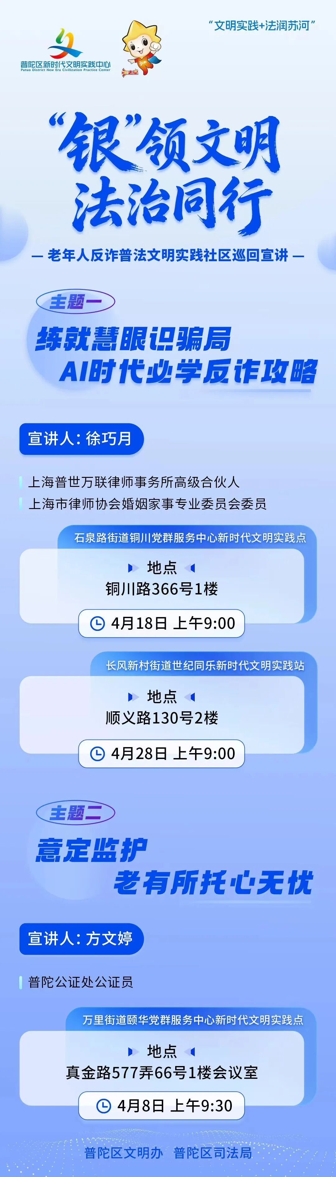 您是否担心接到虚假诈骗电话?是否对手机上突然弹出的“高额回报”理财心动又怀疑?2场硬核反诈攻略+1场意定监护干货来啦,律师、公证员当面教您见招拆招,学几招“慧眼识骗”。