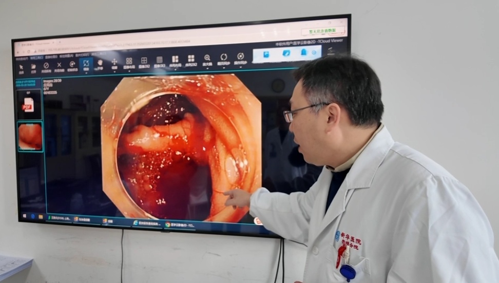 上海健康医学院附属崇明医院消化内科副主任医师殷洪敏介绍:“患者出血的位置很复杂,十二指肠水平段憩室位置深、解剖结构特殊,是内镜检查的相对‘盲区’,其内部出血的诊断和治疗难度都很大。”