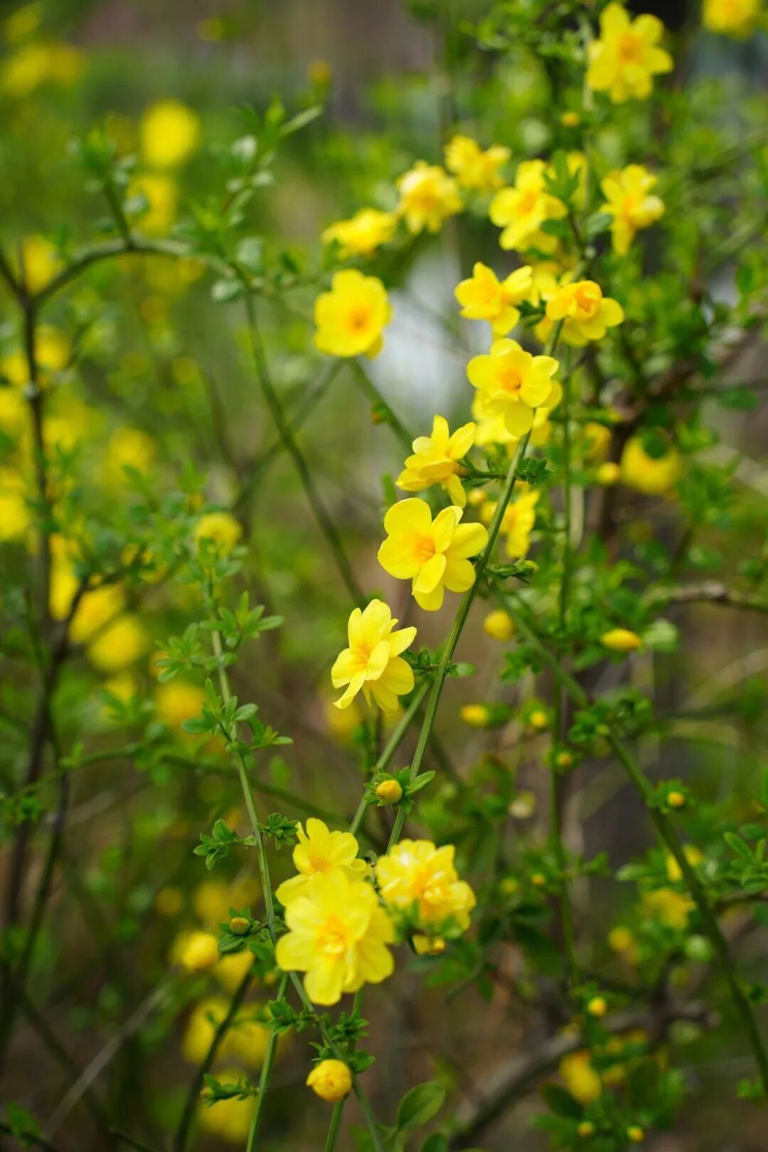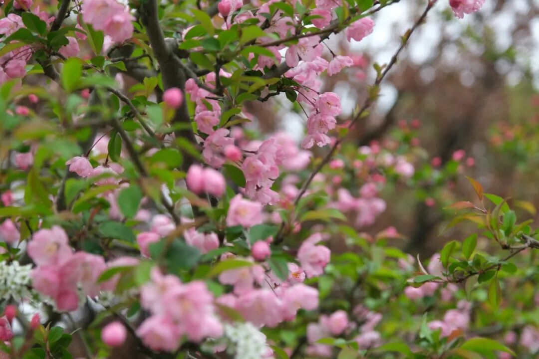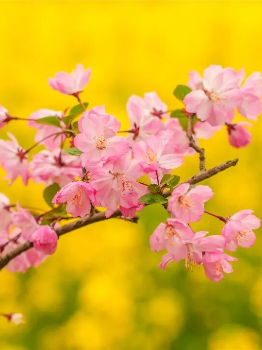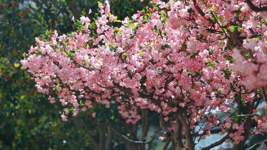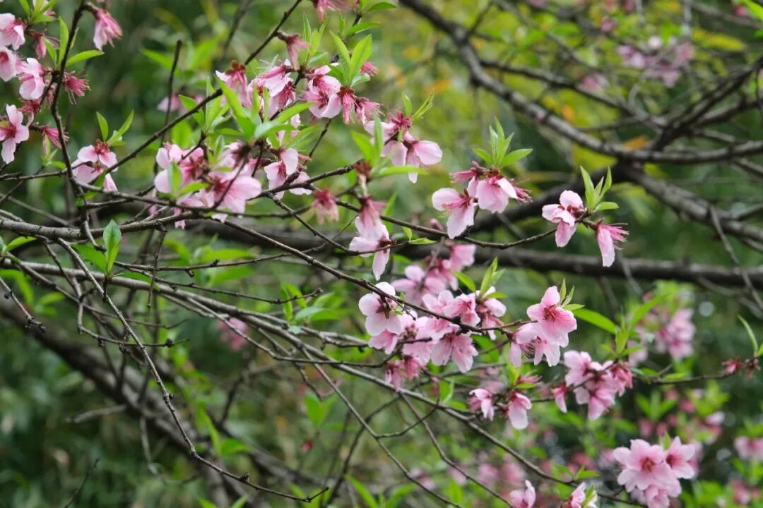 桃花、海棠花、野迎春……