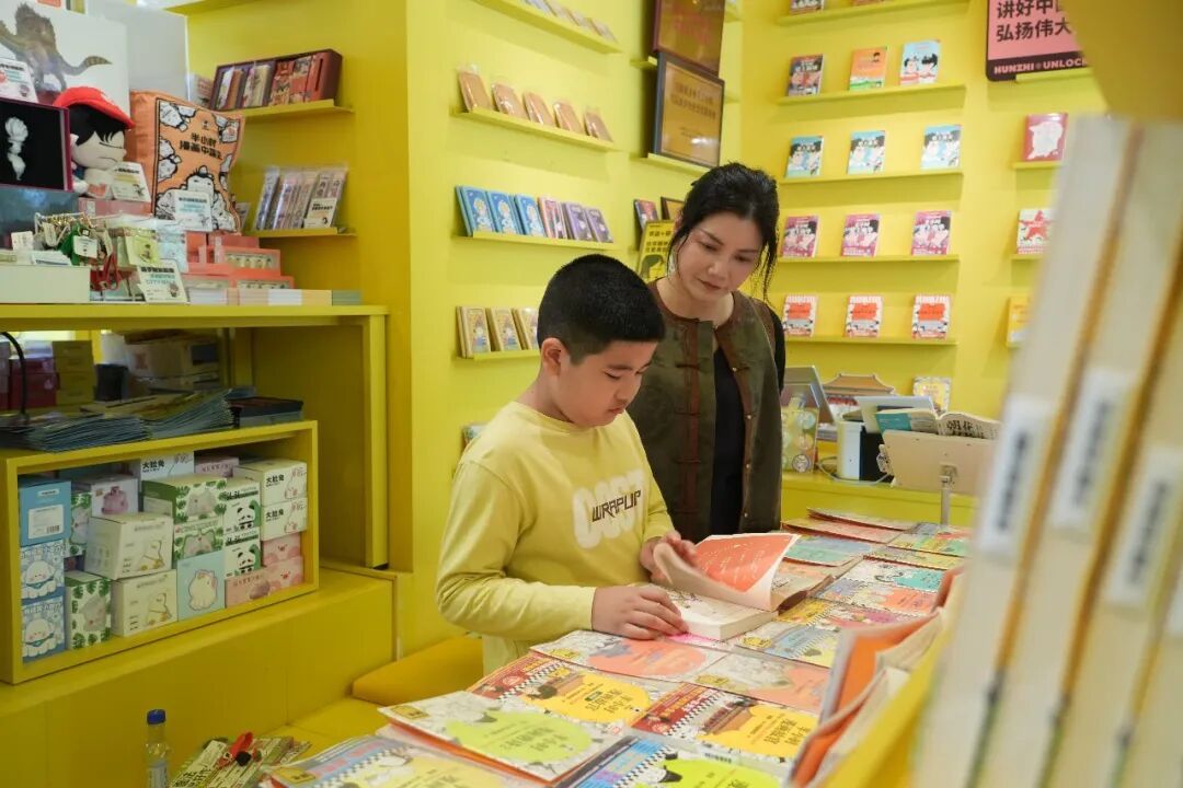 4月6日,记者来到混知书店(远香湖知识馆)看到,不少小朋友正在家长的陪同下挑选心仪的漫画书。《半小时漫画西游记》《漫画课本里的数学》《半小时漫画党史》......来自广东的李楚睿小朋友向记者分享自己的“战利品”。“我是混子哥的铁杆书迷,希望他可以创作更多漫画,让我看个够!”李楚睿告诉记者,这次小长假他特地从广东“打飞的”来到嘉定,就为了打卡这家“混子哥”的实体书店。