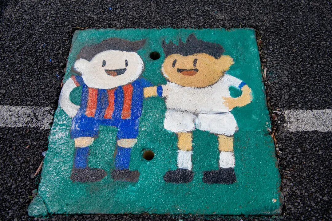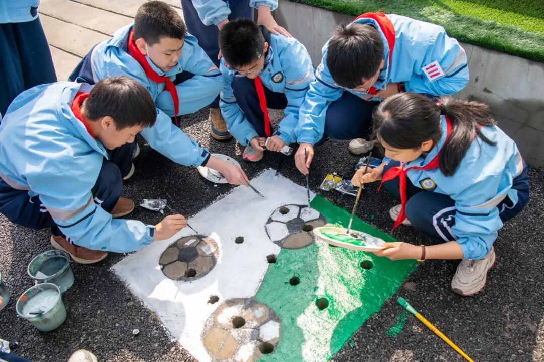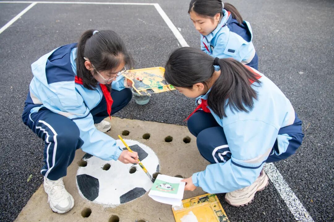 近日,来自西林中学50名学生,在悦野足球乐园和漕泾镇水库村村委会周边,开启井盖彩绘创作。大家围绕足球主题,在12个原本朴素单调的井盖上充分发挥想象力,精心勾勒足球轮廓、描绘运动场景,灵动的足球、奔跑的球员元素跃然“盖”上,让原本单调灰暗的井盖变成了传递活力与激情的风景线。