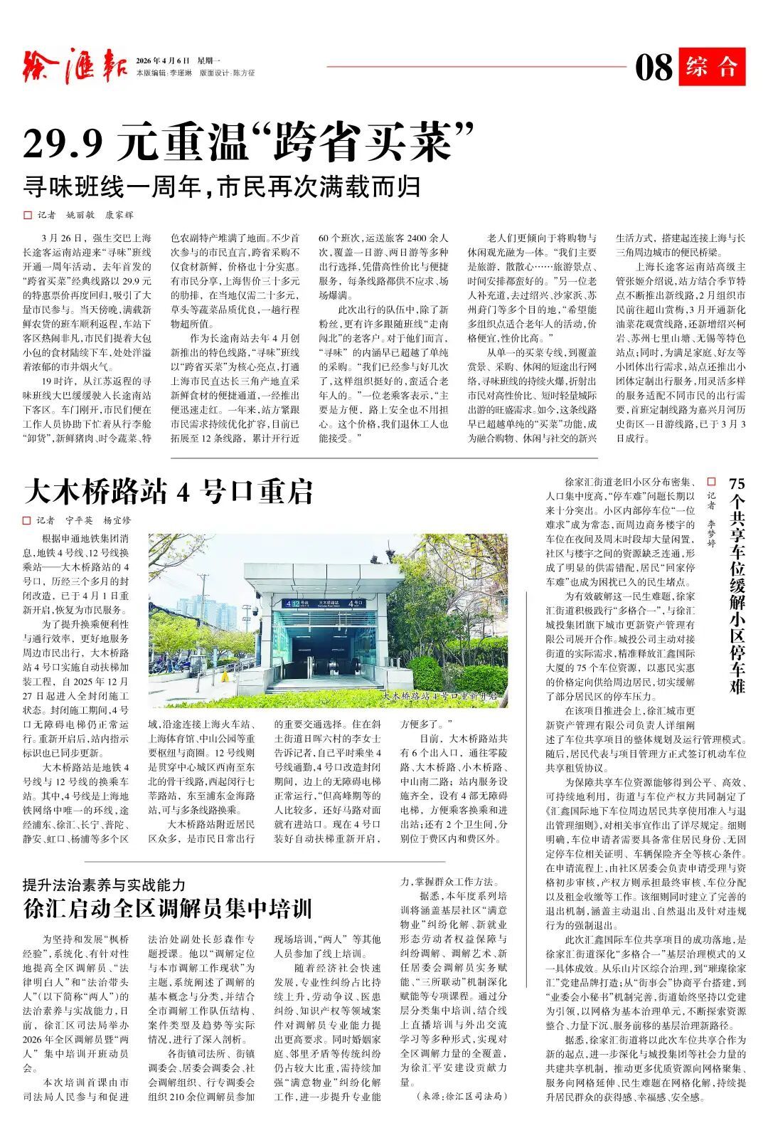 去年走红的“跨省买菜”线路,近日以29.9元特惠票价回归。运营一周年来,上海长途客运南站“寻味”班线已拓展至12条,开行近60班次、运送2400余人次,场场爆满。如今,“寻味”早已超越买菜——老人将购物与休闲融为一体。站方还推出赏梅、观油菜花等新线路及小团体定制,搭建起连接上海与长三角的便民桥梁。