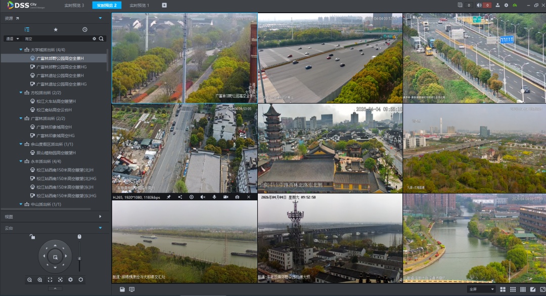 截至目前,区视频中台已汇聚高空瞭望点位262个,涵盖文旅景点、高速匝道、涵养林等重要点位,其中76个重点点位具备“烟火侦测”功能。未来,区城运中心将进一步细化点位布局,提升瞭望系统监控巡查的覆盖面和精细度。