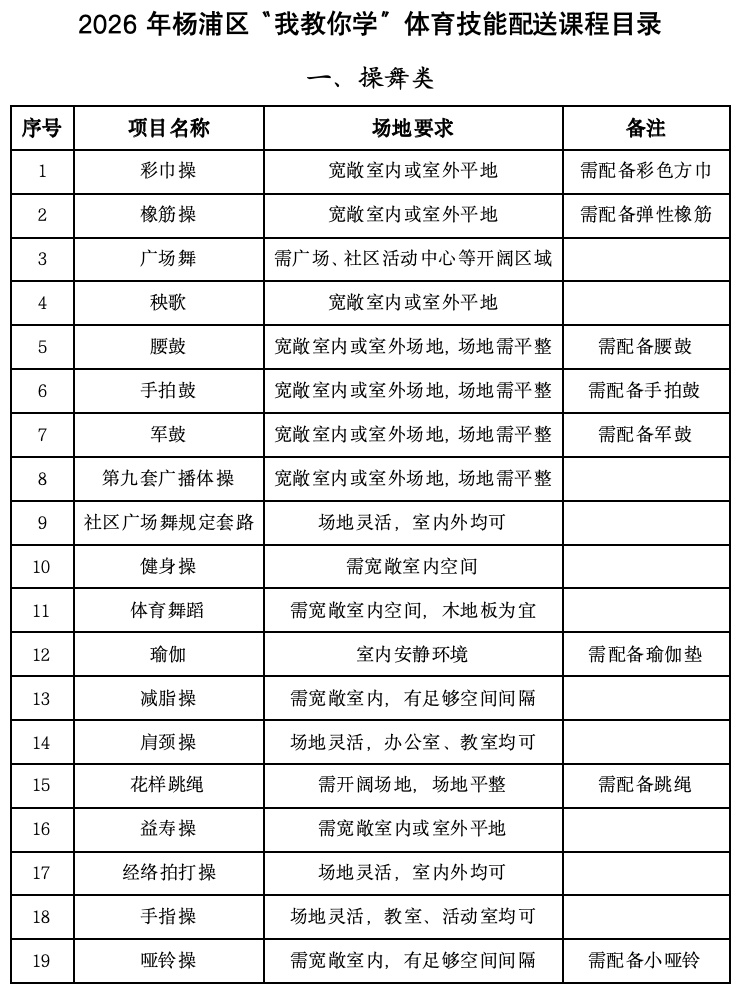 春风送暖,万物复苏,正是唤醒身体、拥抱健康的好时节。2026年杨浦区“我教你学”体育技能配送服务正式启动,将科学健身指导服务送到您的家门口。“菜单式”选课、“点单式”参与,总有一款适合您——无论您是银发族、上班族,还是学生党......都能在这里找到自己的“菜”。