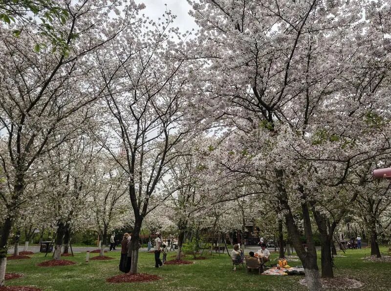 漫步顾村公园,樱花园内的中樱盛放正酣,满树繁花如云似雾,微风拂过,花瓣簌簌飘落,铺就浪漫的“樱花雪”步道,不少游客驻足拍照,定格春日美好。从清晨到日暮,园内人流如织,有全家出游的温馨身影,有好友结伴的欢声笑语,樱花树下、草坪之上,处处是市民游客享受春日的鲜活画面。对于张女士一家而言,每年清明来顾村公园赏樱,早已成为刻进春日里的家庭传统,“从孩子小时候就来,看着樱花年年盛放,就像见证着家里的成长,这是独属于我们的春日仪式感。”张女士笑着说,满树樱花不仅是春日盛景,更是一家人珍贵的回忆。
