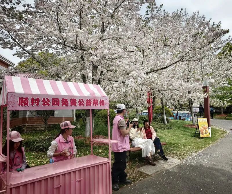 为提升游客赏樱体验,本届樱花节期间,顾村公园特别推出“公益帮拍”贴心服务,工作人员在园内热门赏樱点位,为游客免费拍摄合影、记录美好瞬间,解决了家庭出游“无人拍照”的烦恼,收获市民游客一致好评。此外,公园内便民服务点、应急保障等各项服务全面升级,为游客营造安全、舒适、便捷的赏樱环境,让市民在春日花海中尽享惬意时光。