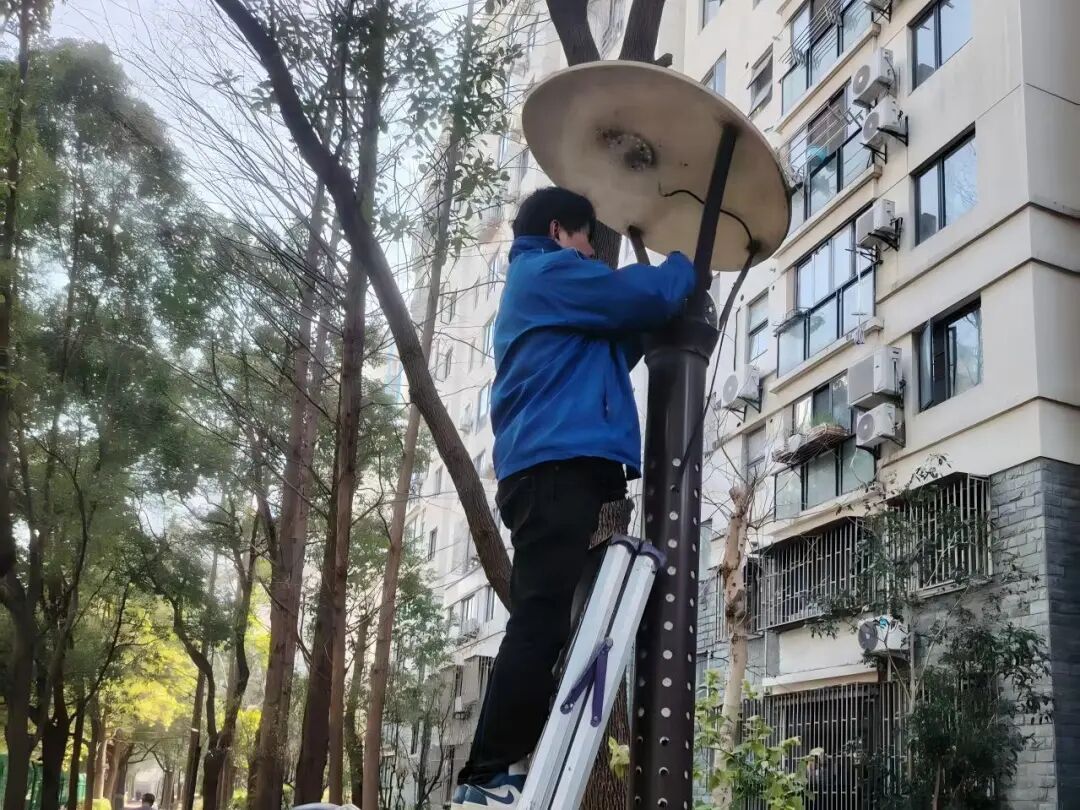 近日傍晚,怡园小区居民反映路灯不亮,联合体接诉后迅速响应,维修人员快速到场检修,当天晚上就修复了故障路灯,照亮了居民回家的路。