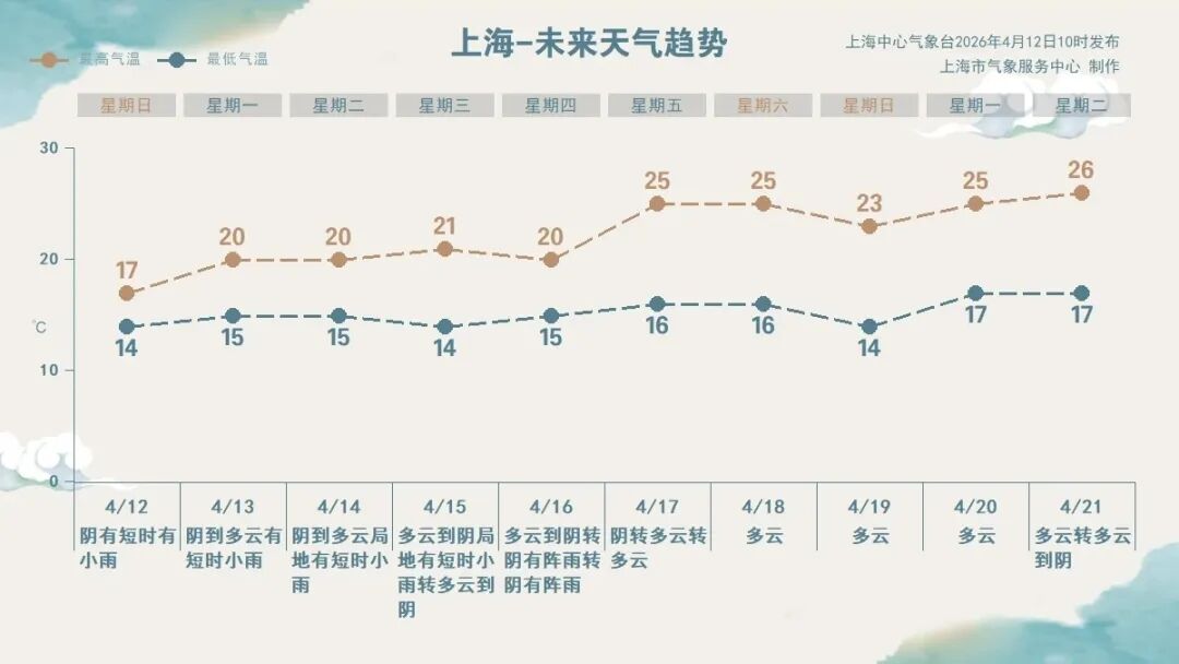 上海中心气象台预计,下周申城天气先雨后晴,气温稳中有升。下周一至下周四本市云系较多,或将伴有短时小雨,降雨间歇期可能出现低能见度天气。预计淅沥雨水将持续到下周五,届时阳光回归,转为多云天气,日最高气温将上升至23~26℃。不过昼夜温差大,早晚依旧偏凉,市民朋友出行记得添一件外套。