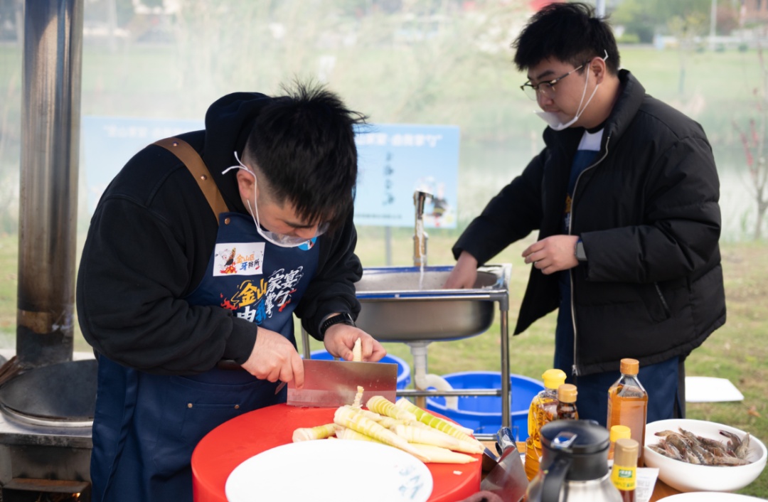 虽然作为业余选手,在生火、热锅时略显生疏,但经过短暂的适应后,逐渐放开手脚,开始大显厨艺。切菜声、翻炒声与现场的欢声笑语交织在一起,将春日的田园变成了热闹非凡的美食竞技场。