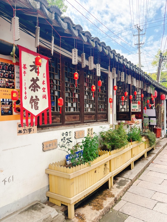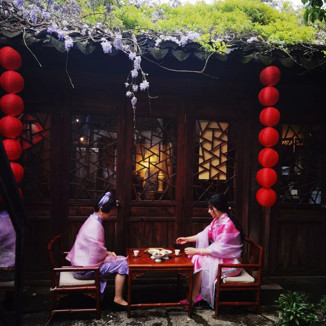 大家围坐在一起,闲话家常,聊聊生活里的小美好,抬头便是满目繁花,低头轻啜一口清茶,所有的疲惫都被这春日的温柔抚平。在茶于·1946,赏的是紫藤花,品的是清茶,享的是独属于古镇的慢时光,每一刻都静谧又治愈。