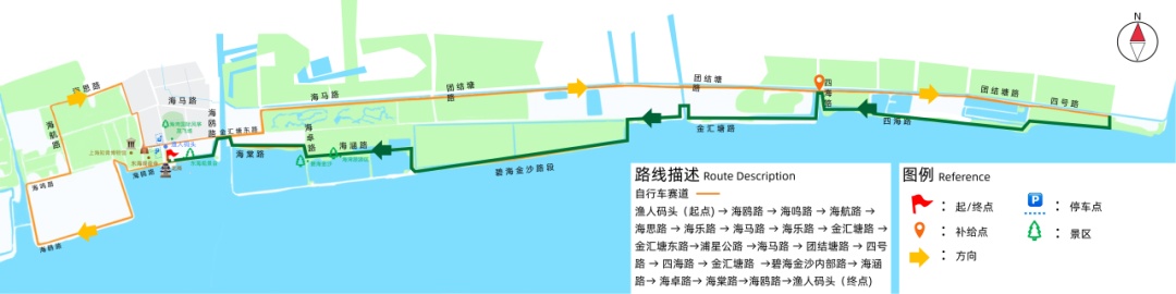 2026年4月19日7时00分至13时00分,渔人码头(起点)—海鸥路(海航路至金汇塘路)—海鸣路(海鸥路至海航路)—海航路(海鸣路至海思路)—海思路(海航路至海乐路)—海乐路(北段)(海思路至海马路)—海马路(海乐路北段至海乐路南段)—海乐路(南段)(海马路至金汇塘路)—金汇塘路(海乐路至海鸥路)—金汇塘东路(海鸥路至浦星公路)—浦星公路(金汇塘东路至海马路)—海马路(浦星公路至农商路)—团结塘路(补给站)(农商路至四号路)—四号路(团结塘路至四海路)—四海路(四号路至团结塘路)—金汇塘路(团结塘路至碧海金沙内部路)—碧海金沙内部路(金汇塘路至海涵路)—海涵路(碧海金沙内部路至海卓路)—海卓路(海涵路至海棠路)—海棠路(海卓路至海佳路)—海鸥路(金汇塘路至渔人码头)—渔人码头(终点)。