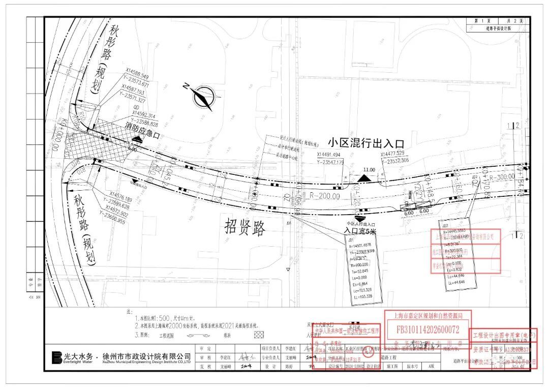 道路全长约320米,其中招贤路(秋彤路-府谷路)段宽12米、招贤路(府谷路-嘉安公路)段宽20米,新建桥梁1座,桥梁跨径(13+16+13)米。
