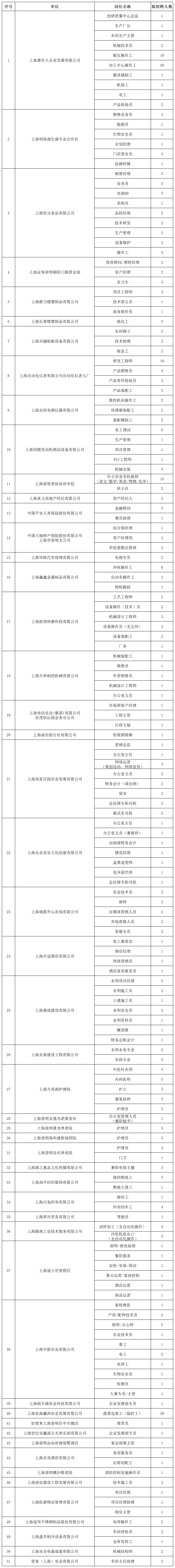 活动时间:4月15日 下午1:30-3:00活动地点:崇明万达广场A区7号门入口内岗位信息(具体岗位信息,以现场招聘会为准)小贴士面试时,请带好您的个人简历以及相关的证明材料,如学历证书、职业资格证书、专业技术职称证书等。更多单位、岗位信息请扫描下方二维码“随申办·乐业上海第一站”找工作二维码“崇明就业·公共招聘”小程序资料:崇明人社编辑:陆海华