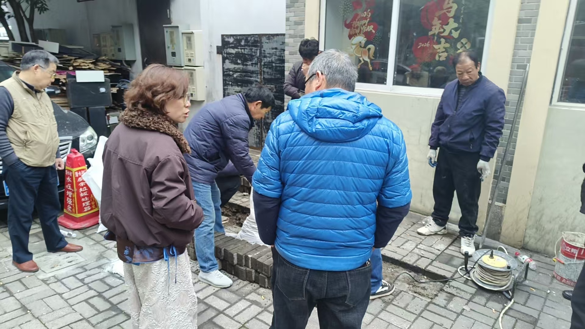 由于公厕管道、小区路面分属不同权责部门,需跨部门协同配合,于是,街道第一时间启动“党建引领、多格合一”工作机制,将该问题纳入综合网格重点督办事项,统筹协调多方力量破解难题,由街道管理办、城运中心、相关居民区、小区物业组成专项工作小组,同时约请并得到了区绿化市容局和城发集团的专业支持。