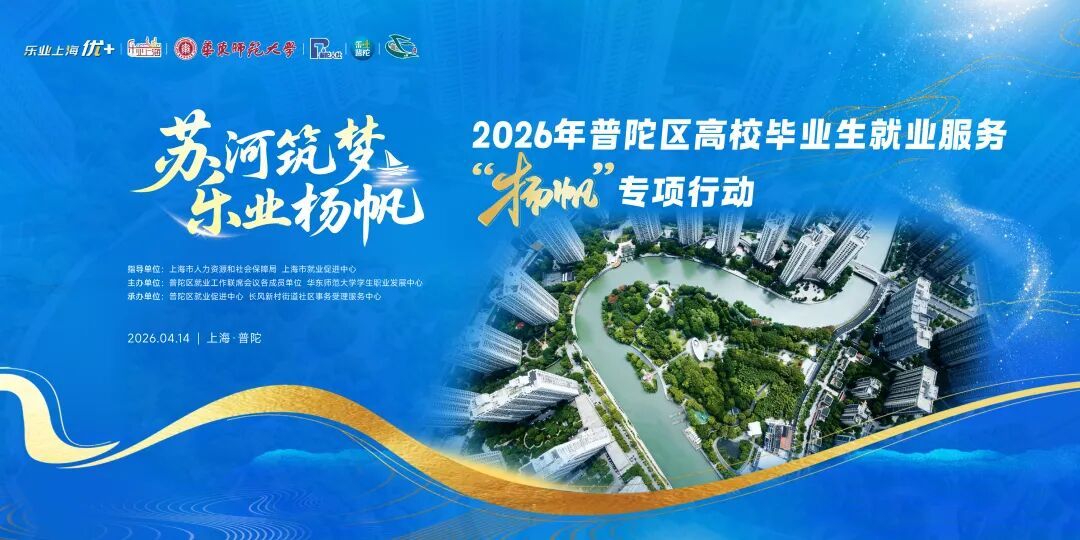 当下正值求职黄金期,为进一步畅通求职招聘渠道,强化高校毕业生等重点群体就业服务,普陀区主动跨前服务,将政策、资源、指导打包送到青年求职者身边。4月14日,“苏河筑梦 乐业扬帆”——2026年普陀区高校毕业生就业服务“扬帆”专项行动将重磅开启,为广大青年求职者搭建一场诚意满满的职场双向奔赴平台。 海量优质岗位是此次活动的“硬核底座”。近130家用人单位携数千个用工需求齐聚华东师范大学普陀校区,企业类型丰富,涵盖多个领域。这场面向高校在校生、毕业学年学生、离校两年内未就业高校毕业生及其他青年群体的招聘盛宴,旨在为不同专业背景的求职者提供充足的选择空间,实现人才与企业的精准匹配。 然而,面对海量机会,如何打破信息差?拿到Offer后又该如何规划长远路径?为了让好岗位真正转化为好前途,普陀区将“全方位就业服务生态链”直接搬进了现场。