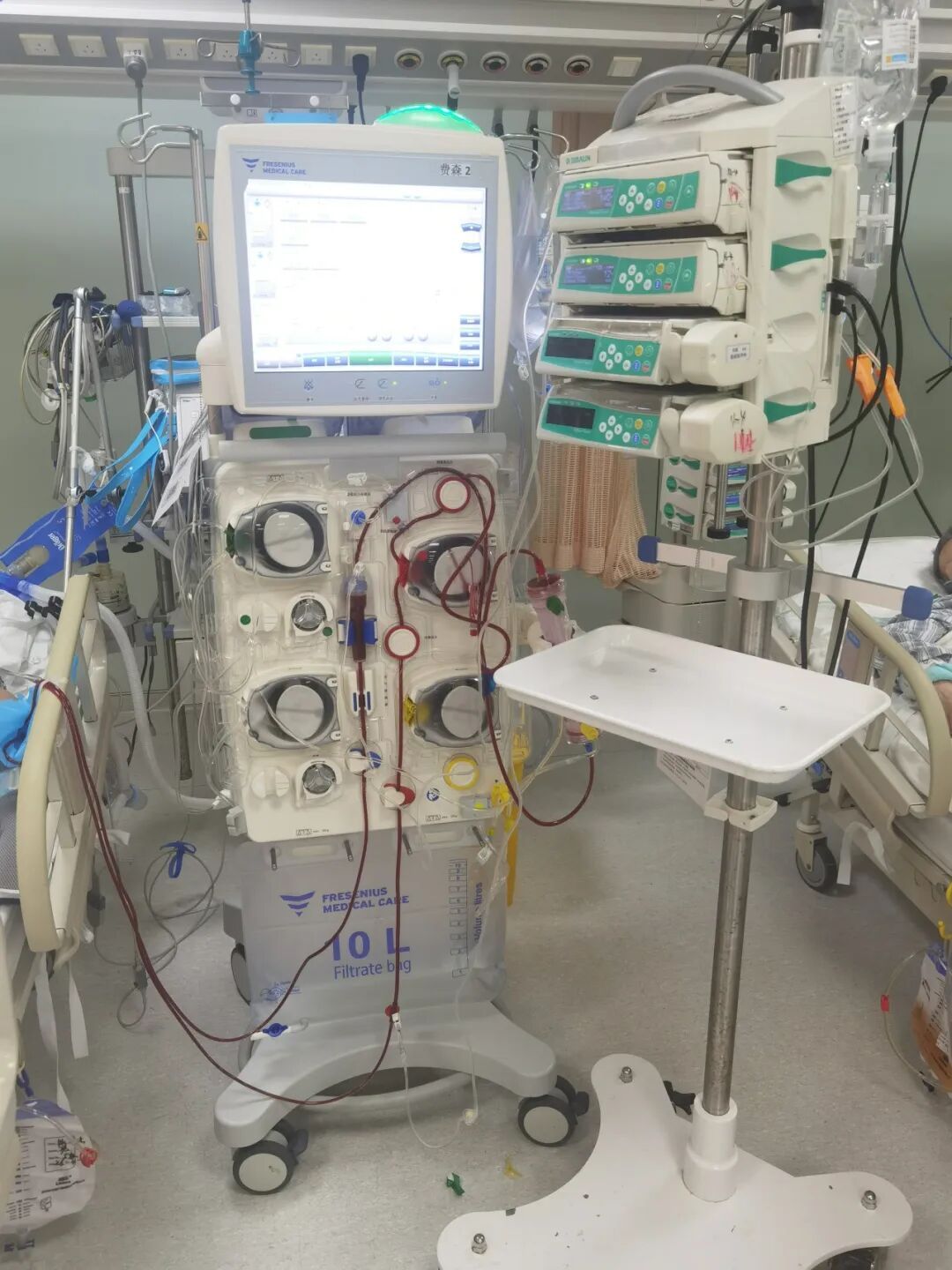 杨阿姨的生命体征连续几日保持平稳,但尿量逐渐减少,从每小时几十毫升降至个位数。肾功能相关指标持续升高。主管医生周娟副主任医师每日查房,根据最新的肾功能报告,决定进行连续性肾脏替代治疗(CRRT)。护士随即连接CRRT管路,完成穿刺、固定和参数调节。CRRT设备开始运转,监护仪警报声停止。