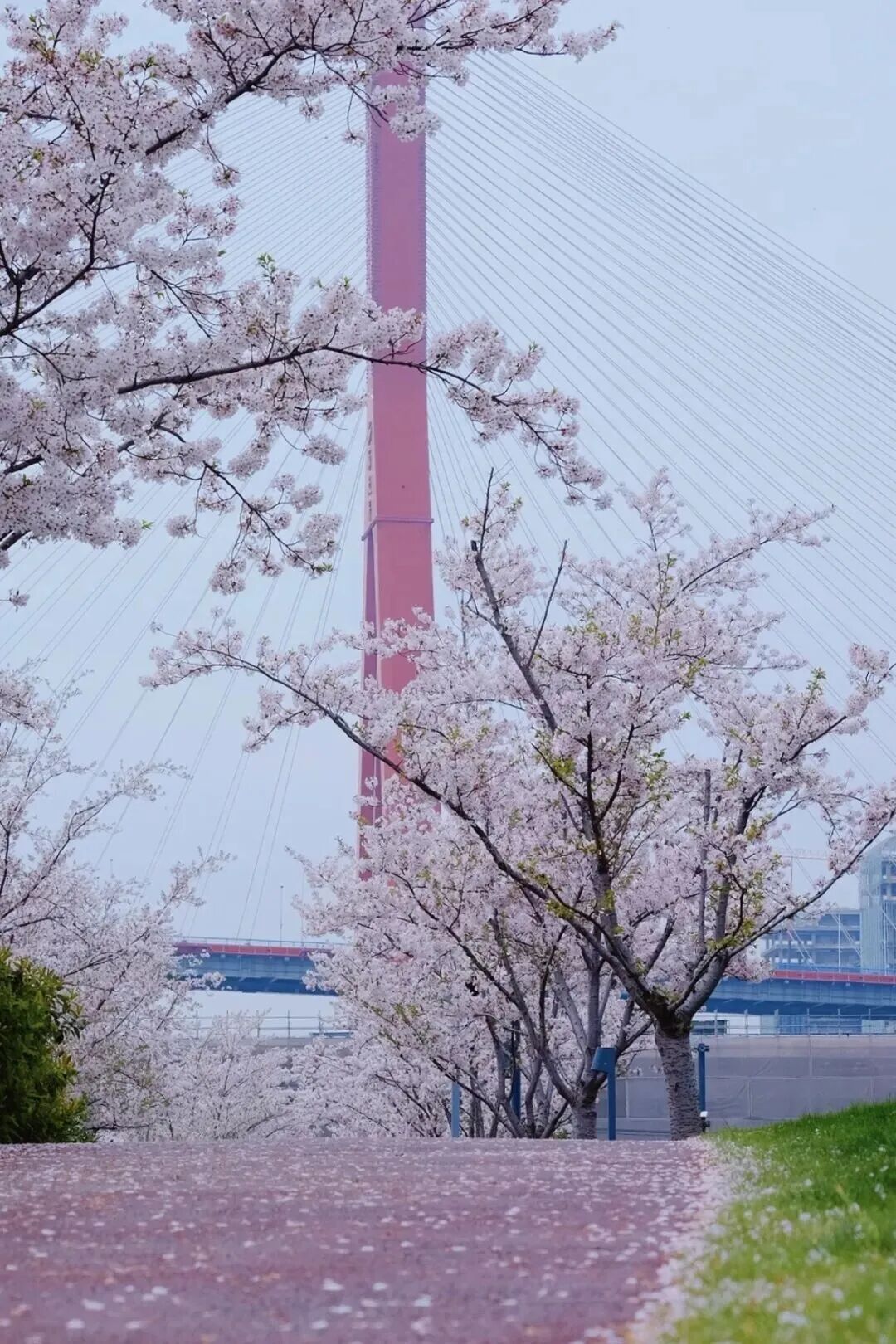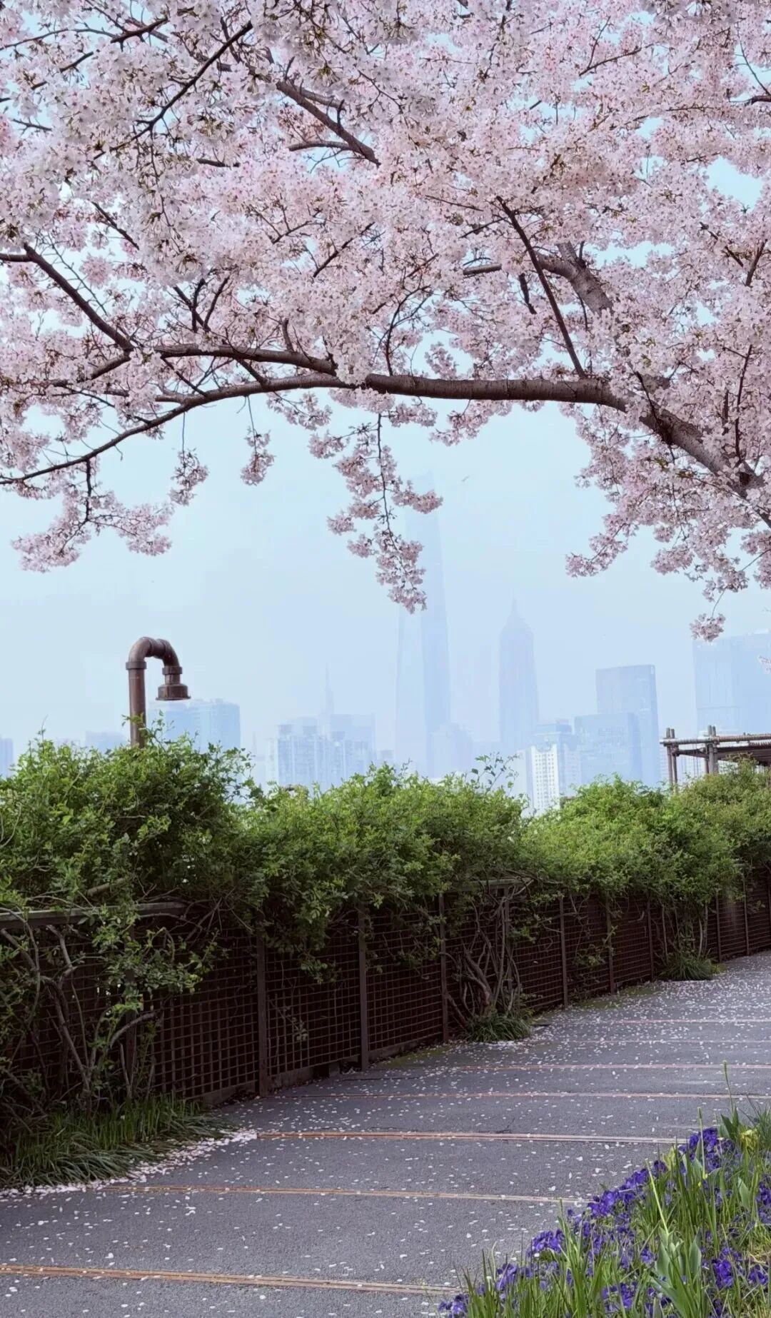 四月芳菲,杨浦滨江15.5公里的岸线上,成片樱花如约盛放,粉白如云。远处陆家嘴摩天楼群与杨浦大桥同框入画,曾经的老工业集聚地,如今正以一场粉色盛宴,诠释着“生活秀带”的别样浪漫。