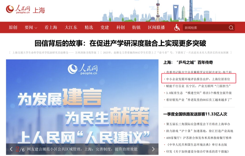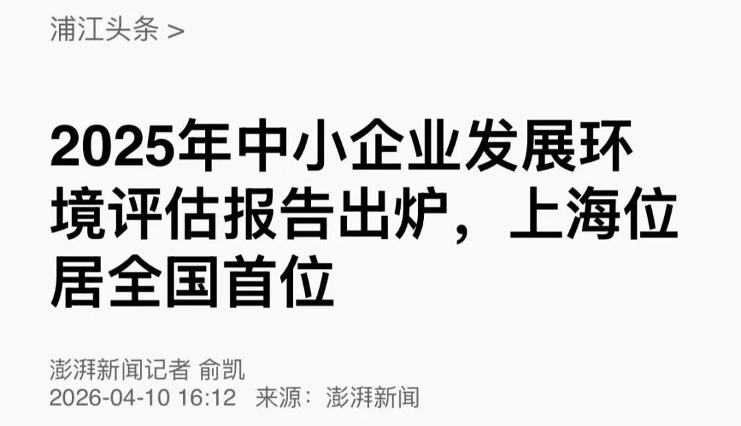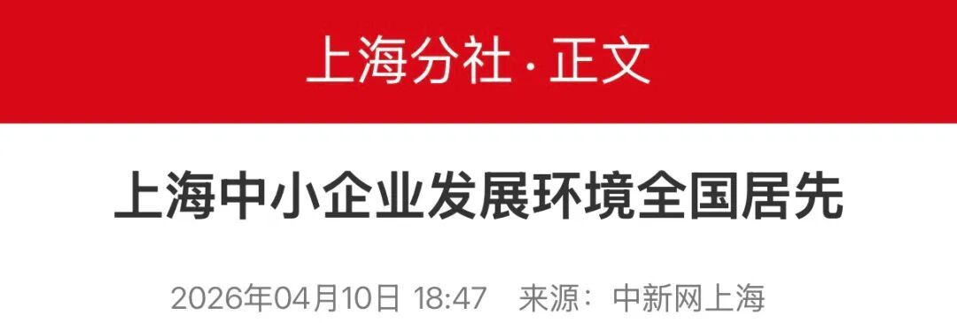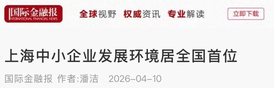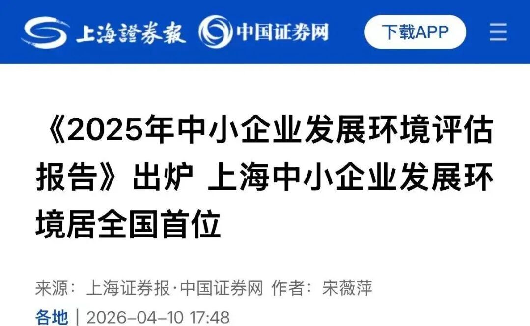 由工信部中小企业发展促进中心发布的《2025年中小企业发展环境评估报告》于4月9日出炉,上海在副省级以上参评城市中综合表现居首位,引起了各大主流媒体关注,此次评估分为市场环境、法治环境、融资环境、创新环境和政策环境五个一级指标,上海的融资环境、政策环境表现最为突出,其他几项也均位于全国前列,下面来一起看看媒体的报道集锦吧!