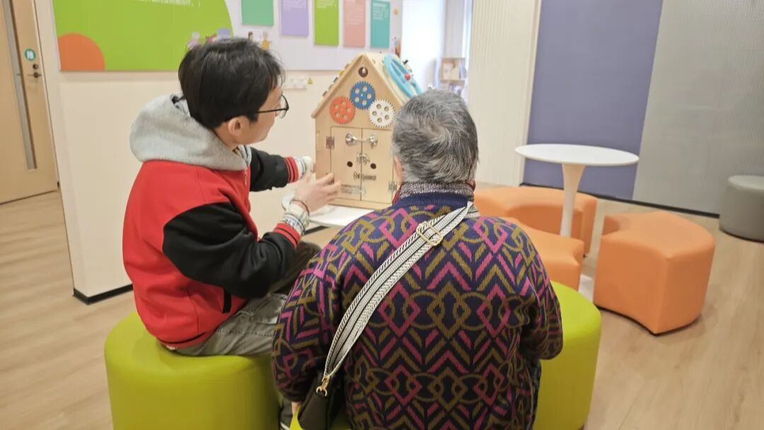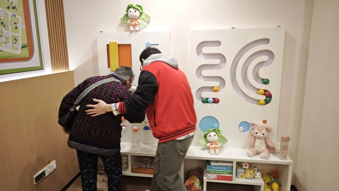 除了基础日间照料和康复服务,中心还针对性打造认知障碍照护专区,推出“缘·忆屋”认知障碍支持中心专属品牌,设置记忆筛查区、非药物干预空间等特色功能区域。专区内摆放各类怀旧老物件,用于唤醒老人记忆,通过趣味益智游戏、互动训练等方式,开展科学专业的非药物干预,目前已有6名轻度至重度认知障碍老人定期前来接受照护。