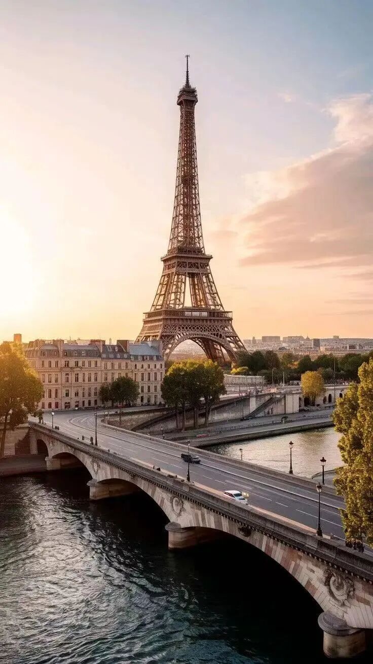 阳光穿过梧桐新叶,在石板路上落下斑驳光影;塞纳河畔,波光如碎金铺开。