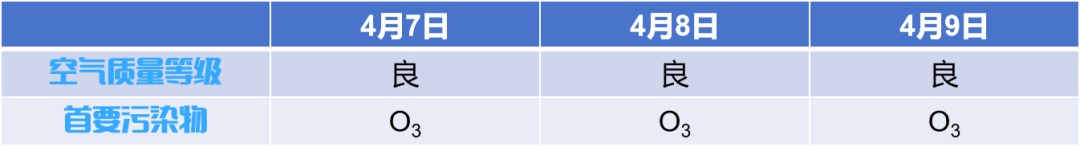 4月3日至4月9日徐汇区空气质量等级及主要污染物: