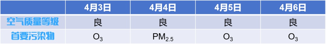 2026年4月3日—4月9日,徐汇区大气环境质量报告如下所示: