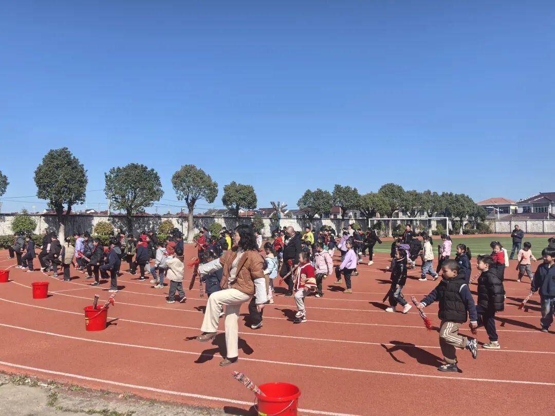 实践为径,绘就体育育人“新画卷”。体育融入校园各环节,既要全域覆盖,更要精准赋能、彰显温度。实验中学与商榻小学的探索,为全区提供了多元范本。实验中学结合特色全员运动,让学生自主选择跳绳、溜溜球、板羽球等项目,每日轮换,并由导师全程陪伴,搭配上下午阳光大课间、课后体育社团等活动,确保每位学生每日享受充足、快乐的锻炼时光。同时,创新推出“乐动比赛日”月度赛事,精心策划一系列具有趣味性的年级体育活动,如三月“绳彩飞扬”、四月“炫彩溜溜”、五月“旋转达人”……让学生月月有比赛、人人都参与、次次有成长。商榻小学则深挖江南本土资源,打造“体育+非遗”特色育人模式,构建“体育课+大课间+午间律动+课外拓展”的全时段体育活动体系,将每日2小时运动时长精准分解到校园生活各环节。学校把上海市非物质文化遗产代表性项目“打莲湘”融入大课间,特邀指导老师手把手教学,让师生在一招一式中感受传统民俗魅力。同时,将中医养生融入15分钟午间律动,八段锦、五禽戏、课桌操轮番上线。通过多种运动形式、特色体育项目,让每一位学子在运动中收获健康、在传承中涵养文化。