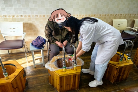 自制中药制剂(温经通络方:桂枝、白芷、川芎、鸡血藤、透骨草、当归等)+温水3000毫升(水温40~42℃)的双足足浴,以浸没两足内外踝关节上2寸为准,每次20-30分钟, 10次为一疗程。
