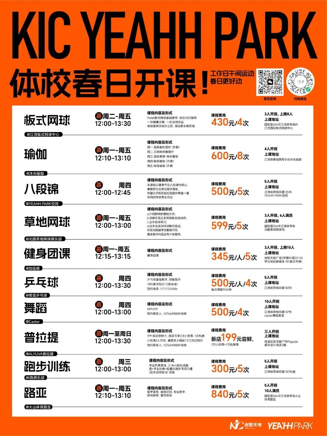 (具体上课地点详见活动详情页)