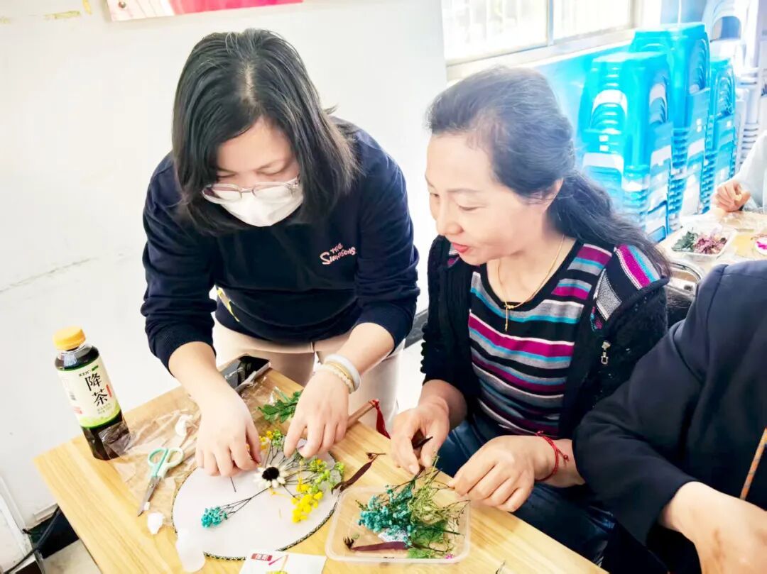 为丰富社区居民文化生活,弘扬中华优秀传统文化,近日,宝山区月浦镇乐业五村开展“扇动中国味,岁月风华”永生花团扇DIY活动,邀请辖区30余位居民共赴一场融合古典与时尚的文化之约。 活动现场花香氤氲,欢声笑语。工作人员提前准备了素面团扇、永生花材、胶水、镊子等物料,并邀请了专业手工老师现场指导。老师首先细致讲解了团扇的历史渊源与文化内涵——作为传统工艺瑰宝,团扇承载着“团圆、友善、吉祥”的美好寓意,是古人纳凉遮面的实用之物,亦是文人题诗作画的风雅载体。同时,还介绍了永生花的特性及构图搭配、色彩层次、固定粘贴等制作技巧。 动手制作环节,居民们兴致盎然,纷纷发挥创意巧思。大家先将永生花按照自己的设计构思在扇面上初步布局,再用胶水细心粘贴固定。有的以淡雅雏菊搭配飘逸蕨叶,营造清新自然的意境;有的用艳丽玫瑰与满天星组合,呈现热情浪漫的风格;还有的巧妙利用花材的天然形态,打造出立体生动的花簇图案。经过一个多小时的精心制作,原本素净的团扇逐渐被点缀成一幅幅独一无二的艺术作品。大家互相欣赏交流,拍照留念,现场气氛温馨而热烈。 此次活动以花为媒、以扇为桥,让居民在亲手实践中感受非物质文化遗产的魅力,同时也增进了邻里情谊。下一步,乐业五村将持续整合多方资源,开展更多形式多样、内容丰富的文化活动,进一步营造邻里和睦、文明和谐的社区氛围。 “一把团扇,一季花开,一次相聚,一份温情”。在这个春意盎然的四月,阿姨们用巧手与创意,将传统文化融入现代生活,让“中国味”在指尖绽放,让“岁月风华”在心间永驻。 通讯员:瞿晓秋 编辑:张博宇 资料:月浦发布 *转载请注明来自上海宝山官方微信