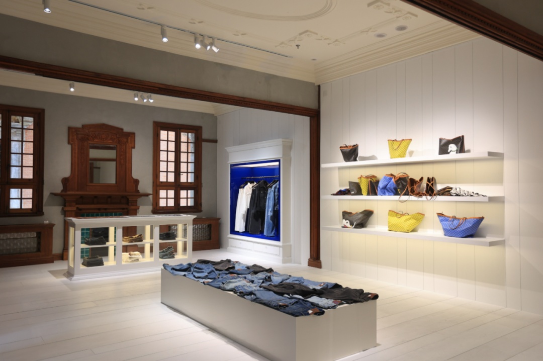 位于空间另一侧的个性化定制空间为消费者提供手袋、小皮具及丹宁单品