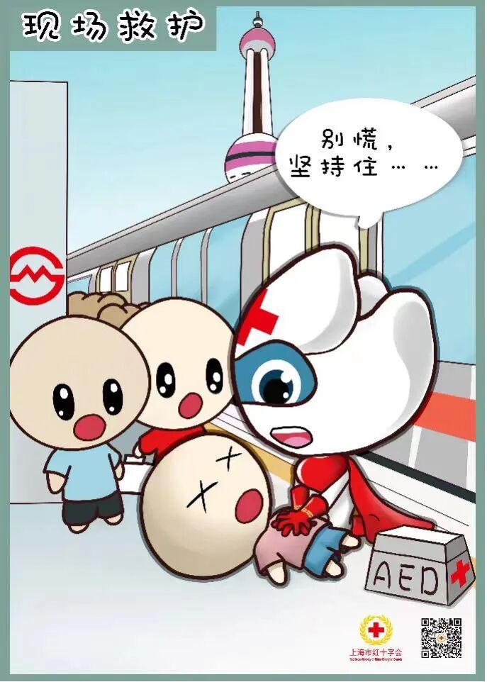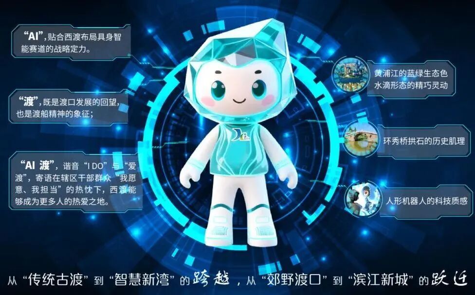 须同时融入上海市红十字会卡通形象“红娃”与西渡街道IP形象“AI 渡”(“红娃”与“AI 渡”的整体外观保持不变,可对其表情及姿势进行合理调整)。