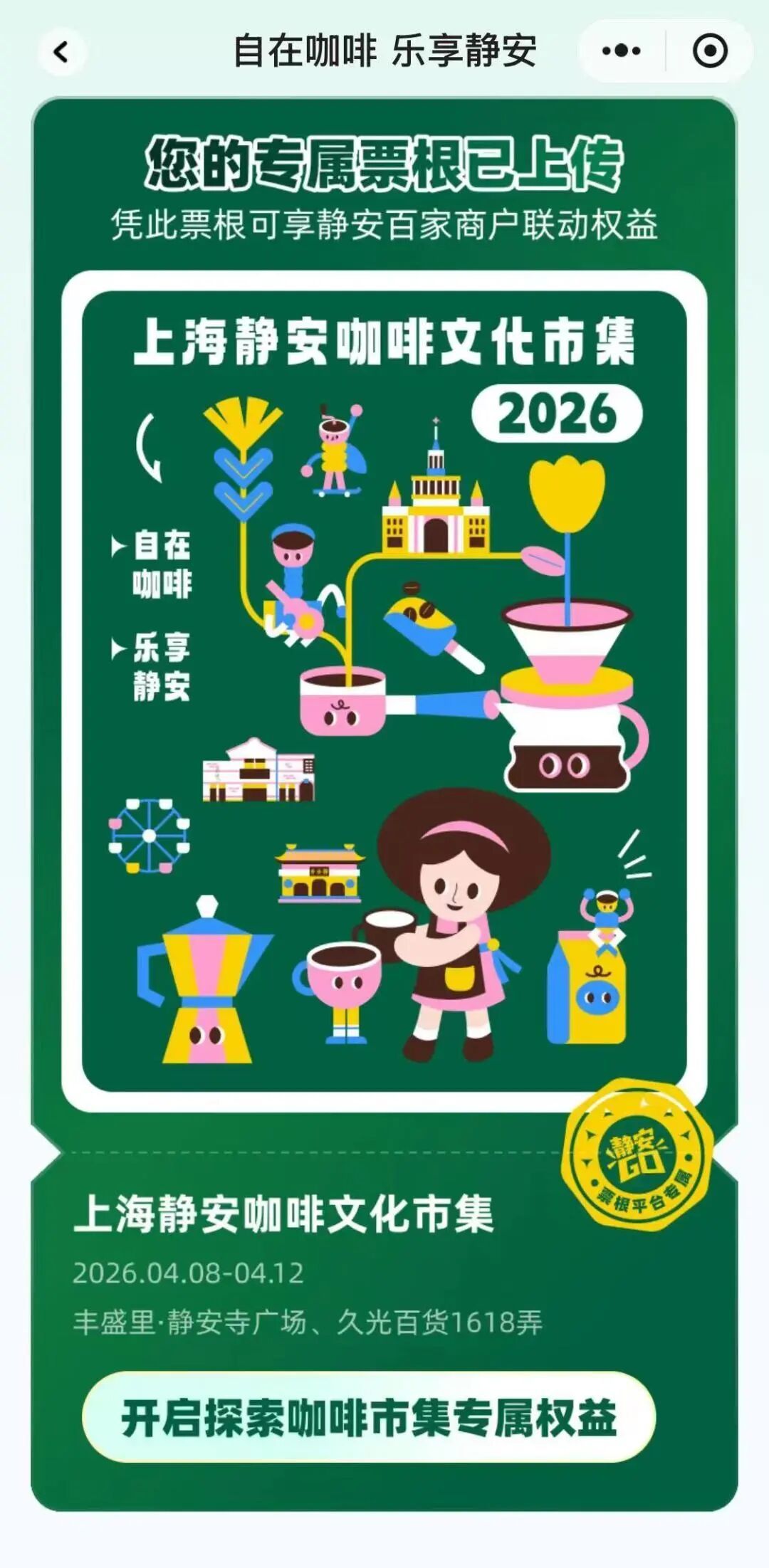咖啡市集专属票根”被领取,串联起静安各大商圈商户联动福利。