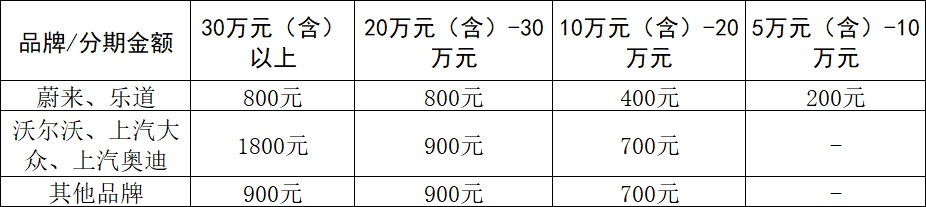 个人消费者在嘉定区符合条件的汽车销售企业购买符合要求的小客车新车,按照车价(发票上的含税价)的不同,给予每辆新车一次性定额补贴,具体分档如下: