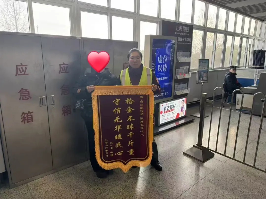 3月20日,一位乘客在11号线南翔站2号口拾得一部手机,当即交由现场民警转送至车站。工作人员正准备进行遗失物品登记时,失主恰好拨通了自己的手机。得知消息后,失主迅速赶往车站。工作人员在2号口客服中心仔细核对信息无误后,将手机完好交还。失主对车站认真负责的态度和高效的服务深表认可,事后特意送来锦旗,称赞工作人员“拾金不昧千斤重,守信无华暖民心”。3月26日,11号线枫桥站站务员王恩杰按例上车巡视车厢,在座椅上发现一只无人认领的背包。他立即将包带下车,并第一时间联系车控室报告情况。值班站长叶云宇与驻站辅警樊文杰迅速赶至站台,三人共同开包查看。经清点,包内装有现金1.6万元、驾驶证等贵重物品。辅警随即联系驻站民警武运东到场,通过驾驶证信息很快确认了失主身份并取得联系。当天下午,失主匆匆赶到车站,经核对无误后,现场将财物完好归还。整个过程井然有序,展现了车站与警务人员的高效协作。