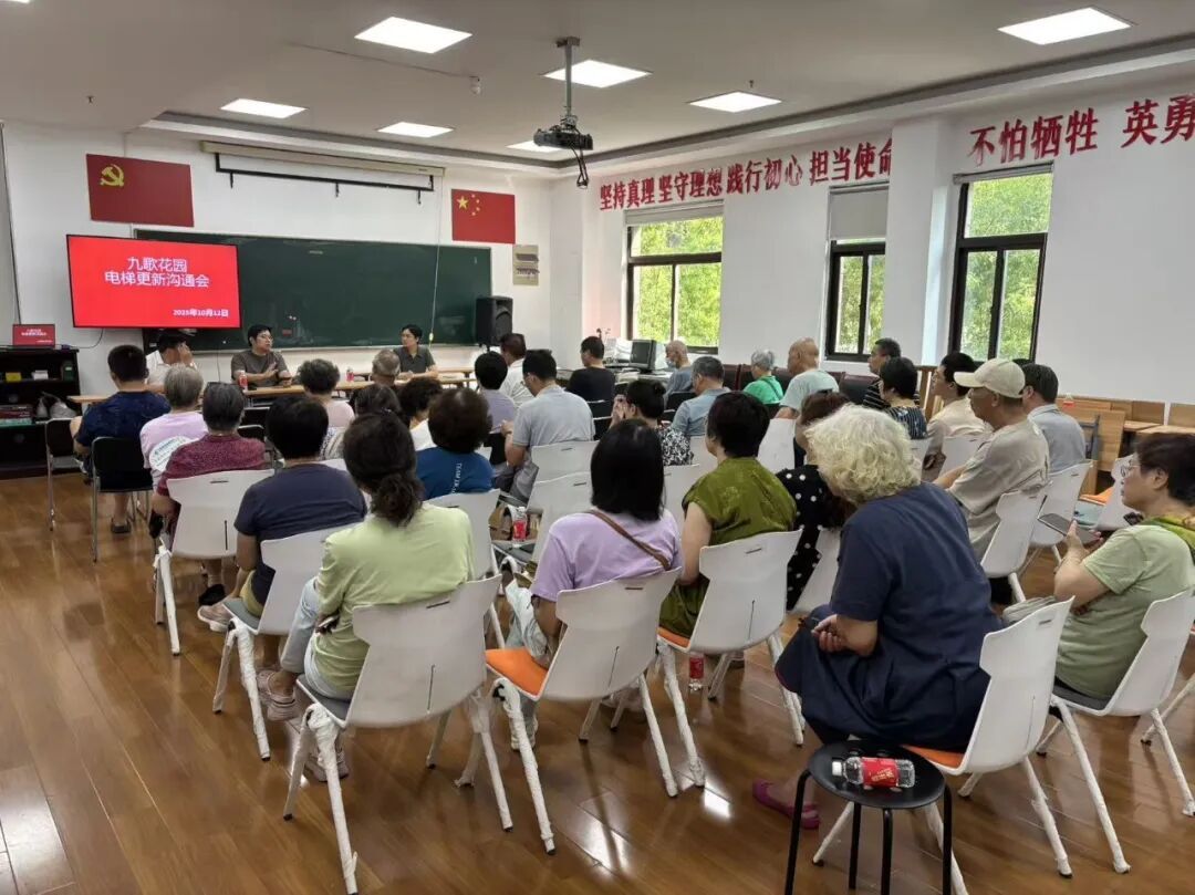 九歌花园一二期建于上世纪90年代末,电梯在使用多年后,经常会发生故障、停运等情况,影响出行的同时也引起了居民们的担忧。而这一切在2025年迎来转机——国家出台国债项目补贴政策,对梯龄15年以上、达到报废年限的更新电梯,每部给予15万元补贴。居委会工作人员第一时间向居民宣传,反响热烈。“大家早就想换了,这次政策来了,等于推了一把。”