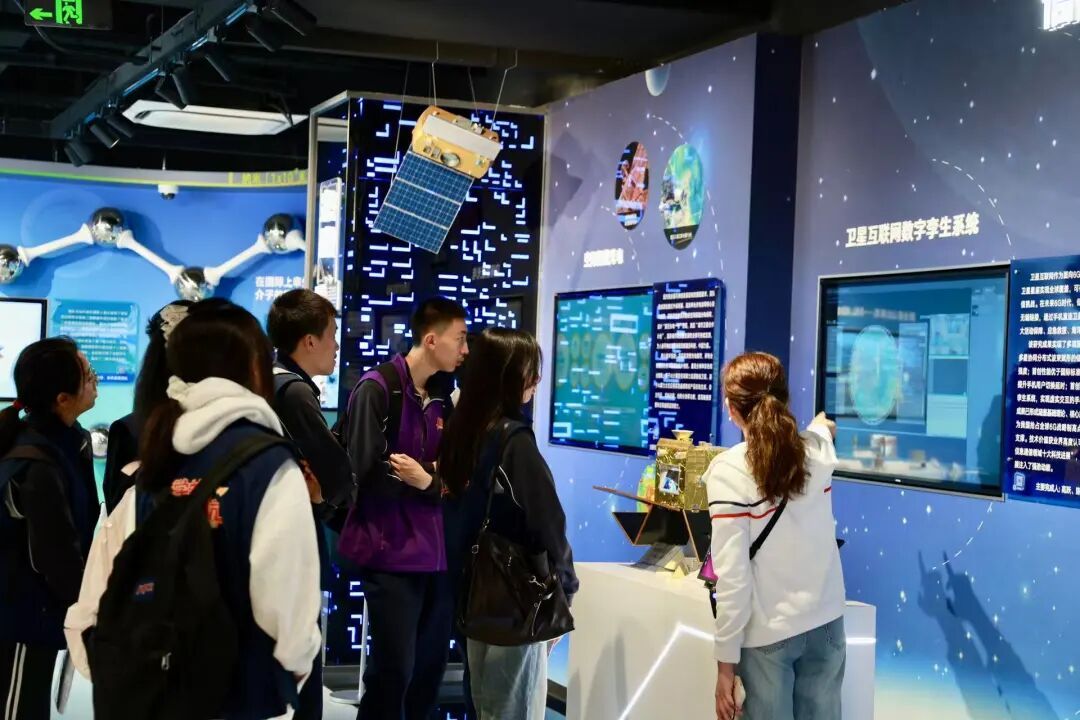 在“复旦源”历史风貌区,同学们依次走进校史馆与科技成果馆。校史馆中,泛黄的老照片、珍贵的实物,诉说着复旦自1905年建校以来的风雨征程与百年荣光;科技成果馆内,生动的展板与影像资料,展现着复旦用科技复原英烈面容、借卫星探索浩瀚宇宙的硬核实力,让遥远的科技成就触手可及。