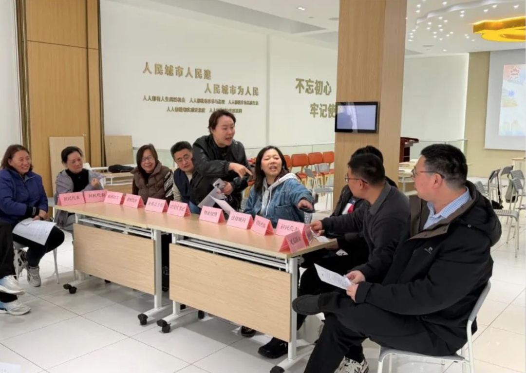 光听不够,还要上手练。针对老旧小区物业费调价这一常见难题,徐汇区有邻社区治理服务中心理事长夏志慧带领大家开展沉浸式模拟演练。学员们分别扮演居委会、物业、业委会、居民代表,完整还原社区“三会”召开全过程。在角色互换中,大家真切感受到,社区治理要兼顾多方诉求,“三会”制度正是协调矛盾、凝聚共识的好办法。