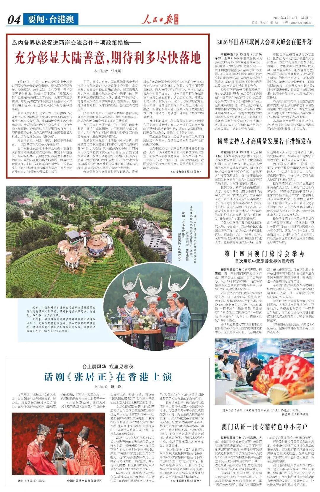4月12日,中共中央台办受权发布十项促进两岸交流合作的政策措施,涵盖两岸经贸合作、交通旅游、民生基建、文化影视、青年交流等多个领域。这份内容丰富的“政策大礼包”迅速在岛内引发各界热议,大家普遍表示欢迎,呼吁民进党当局不要基于政治私利和算计而横加阻碍,让这些惠及民众的措施尽快落地。