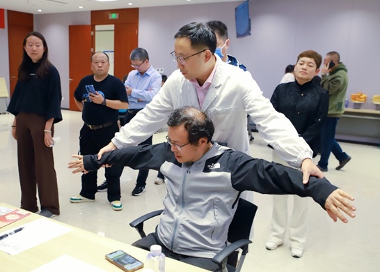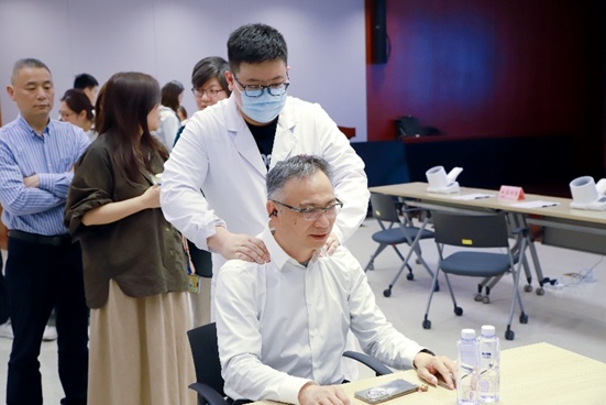 活动现场,来自中医内科(心病科)、妇科、骨伤科、耳鼻喉科、脾胃科、治未病科等多个特色科室的专家们逐一耐心答疑,结合职场人群工作特点,从饮食搭配、作息规律、穴位按摩、中药养护等方面给予个性化指导,并现场示范简单实用的肩颈放松动作,帮助职工在办公间隙有效缓解疲劳。
