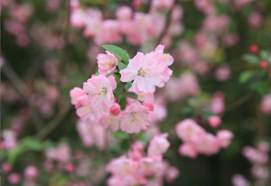 1540平方米的长条形小园,藏在居民区边上。入口有铁艺景墙,往里走是林荫广场和木栈道,海棠、红叶李开得热闹。傍晚时常能见到阿姨们跳舞,小朋友跑来跑去。
