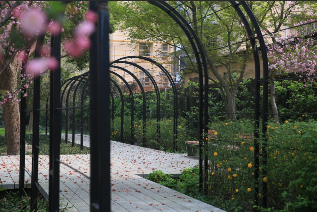 1354平方米的“街心小花园”。水景、花台、大香樟,层次丰富,四季都有不同的花。路过就想停下来坐一会儿。