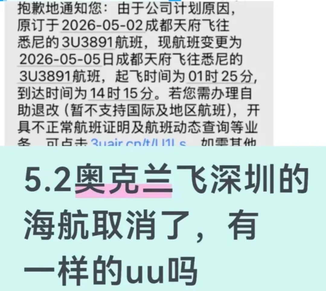 “五一”假期机票被取消的截图