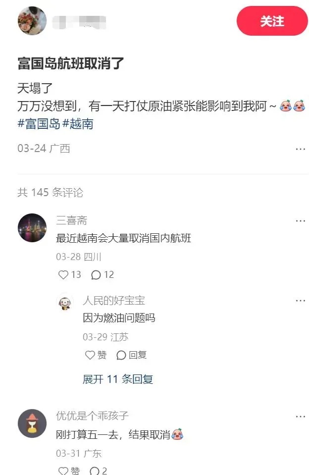 此前,菲律宾总统马科斯也曾公开表示,航空业因燃料紧张而停飞“是一个明确的可能性”。目前,越南航空已暂停每周23个国内航线,越捷航空也计划在4月削减18%的运力,其中国内航班减少22%,国际航班减少11%。