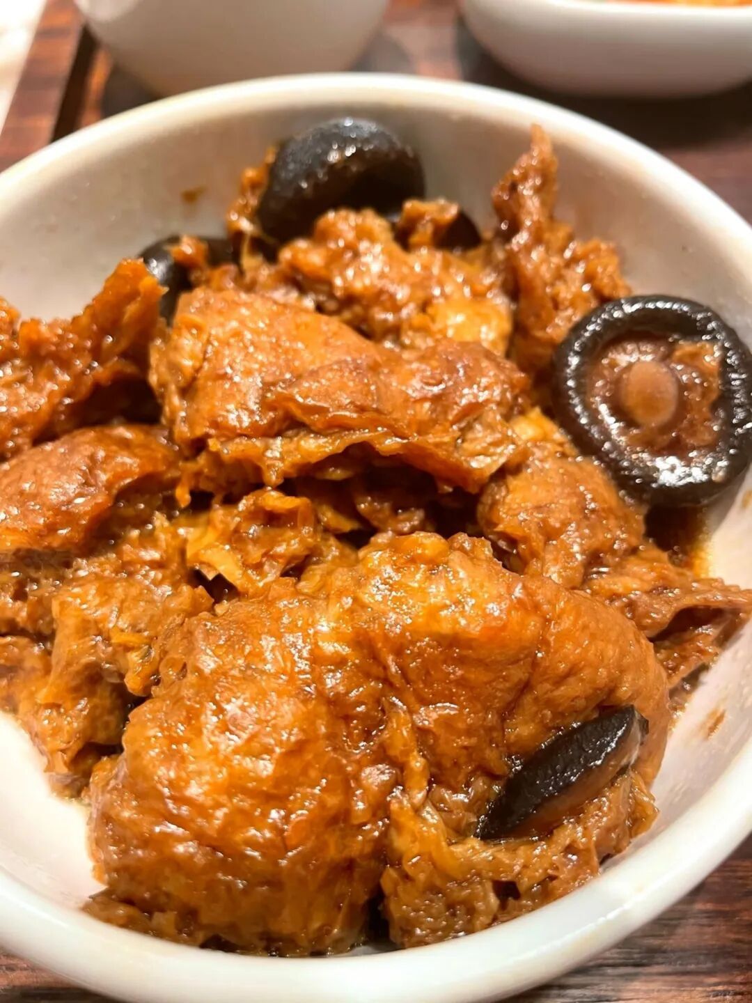 以前松月楼还有个招牌,面筋面和罗汉上素面,记得那时,面筋面是两角五分一碗,二两半。面筋是自制的,块头很大,有点像现在的牛排一样大小,一般一碗有三块面筋。暗色的汤水、褐色的面筋、配上青青的蒜叶,淋上香香的麻油,看上去就很诱人。咬一口面筋,汁水在口中慢慢溢出,满口鲜香。面筋很酥,但绝不会一嚼就化;面筋有韧劲,但绝不像牛筋那样,咬不动。