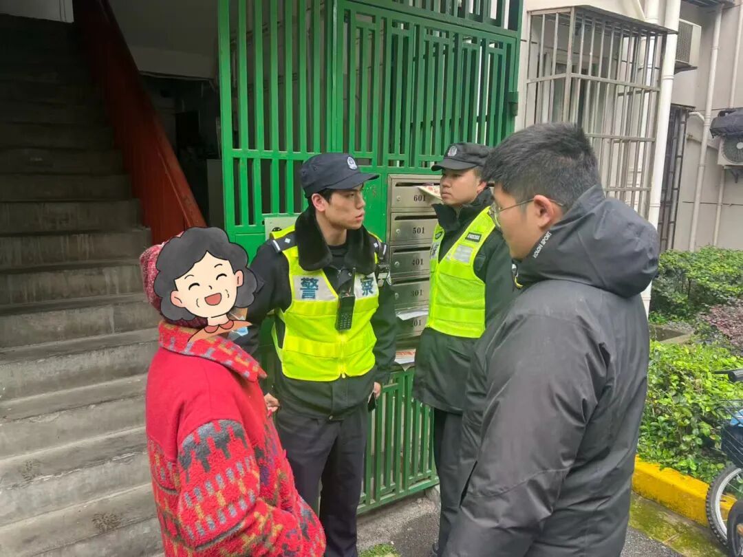 社区民警与居委工作人员向张阿婆了解情况