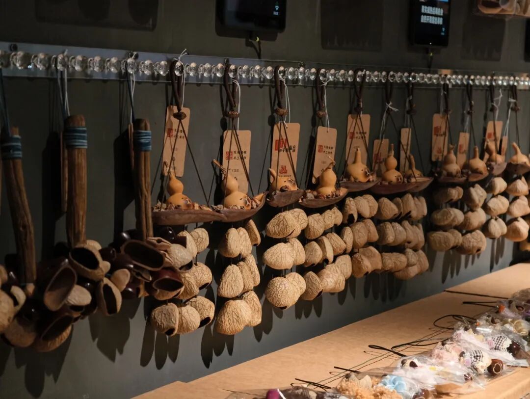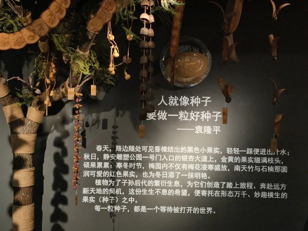 形态各异的种子制作成的风铃能够发出不同的声音,有的清脆悦耳,有的像溪流潺潺。展区不仅陈列着形态各异的奇趣种子,更通过循环播放教程与现场布置的科普场景,让种子“开口说话”。