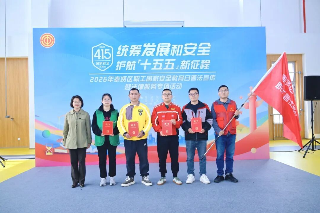 现场举行奉贤区国家安全职工普法志愿者队伍出征仪式。这支由职工组成的普法力量,将深入基层一线、走进职工群众,常态化开展国家安全宣传教育,让安全理念深入人心。