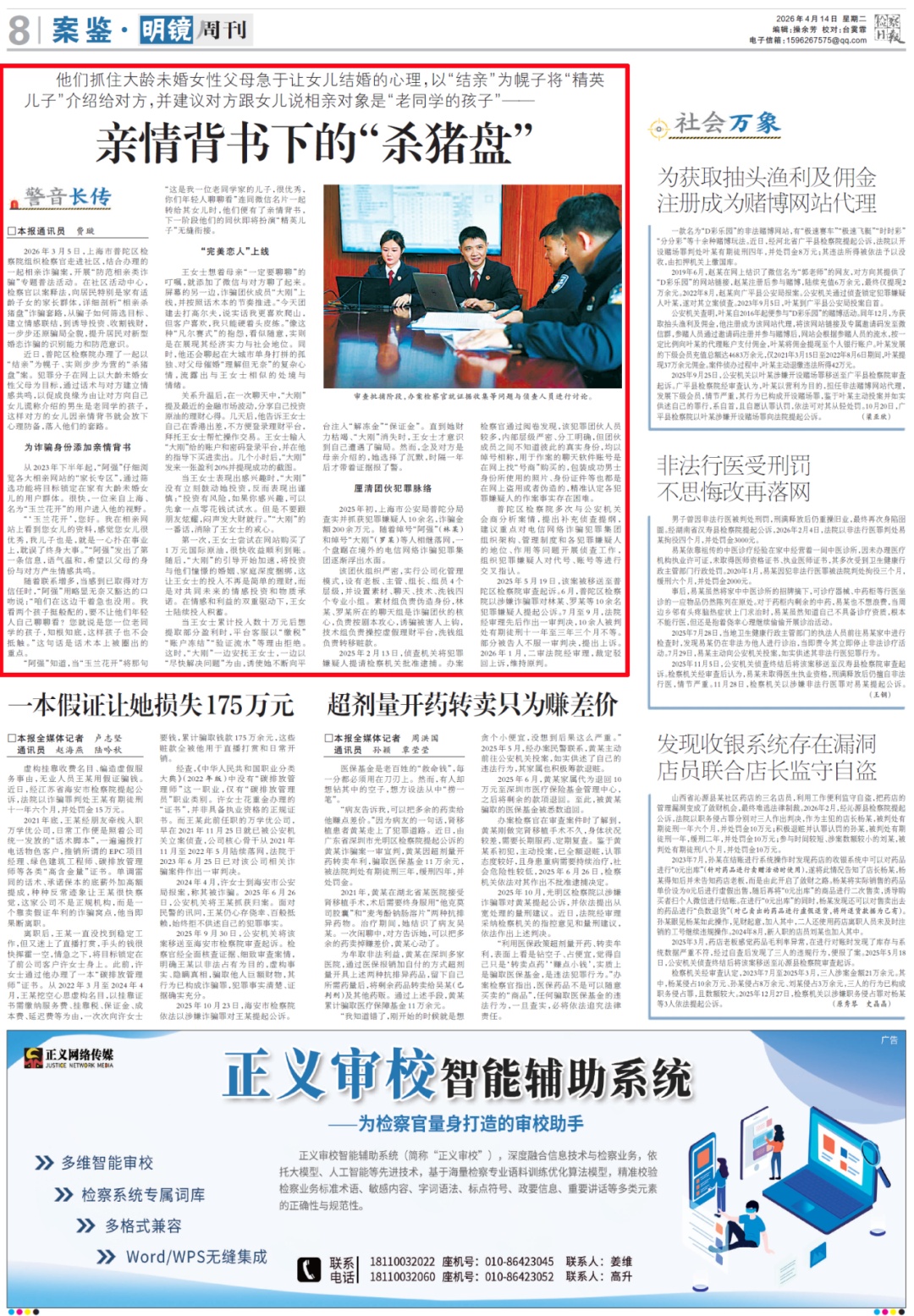 近日,普陀区检察院办理了一起以“结亲”为幌子、实则步步为营的“杀猪盘”案。犯罪分子在网上以大龄未婚女性父母为目标,通过话术与对方建立情感共鸣,以促成良缘为由让对方向自己女儿谎称介绍的男生是老同学的孩子,这样对方的女儿因亲情背书就会放下心理防备,落入他们的套路。