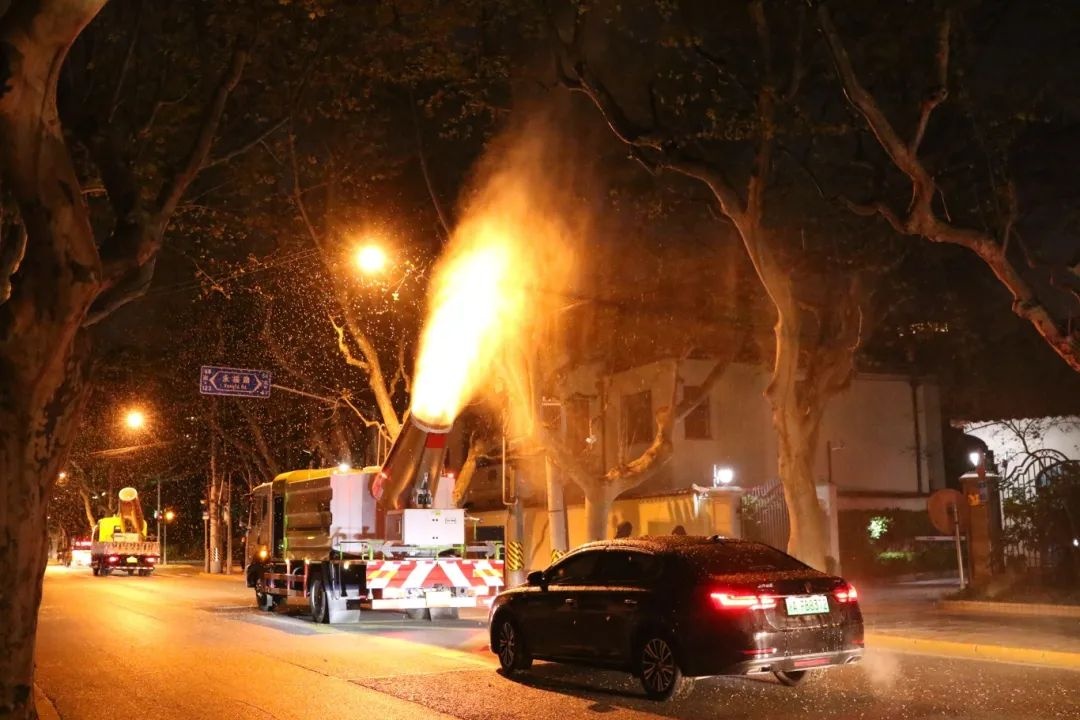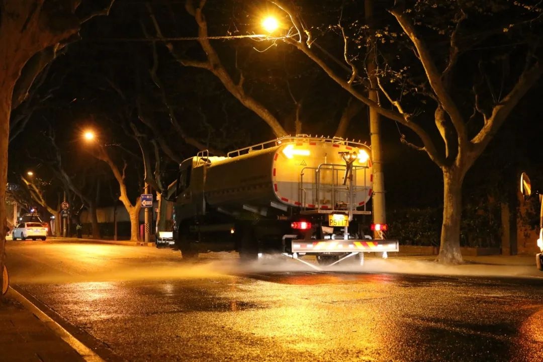 雾炮冲刷工作选择在夜间开展,不仅能避开交通高峰,还能减少对市民出行影响。